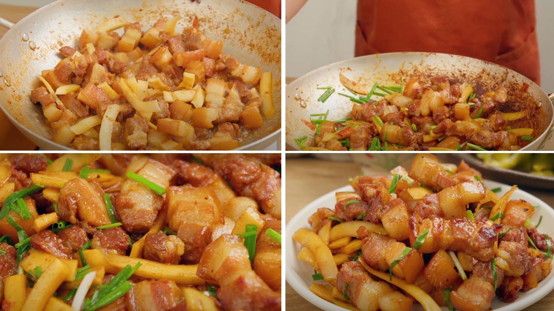 Nếu muốn thịt có màu đẹp và rám cạnh, có thể chắt bớt nước ra, vặn lửa lớn đảo đều cho thịt xém mặt.