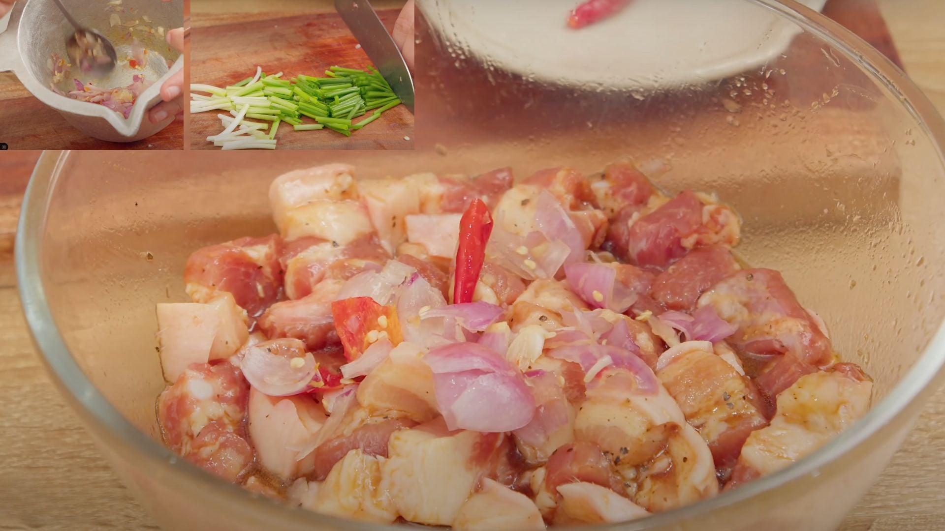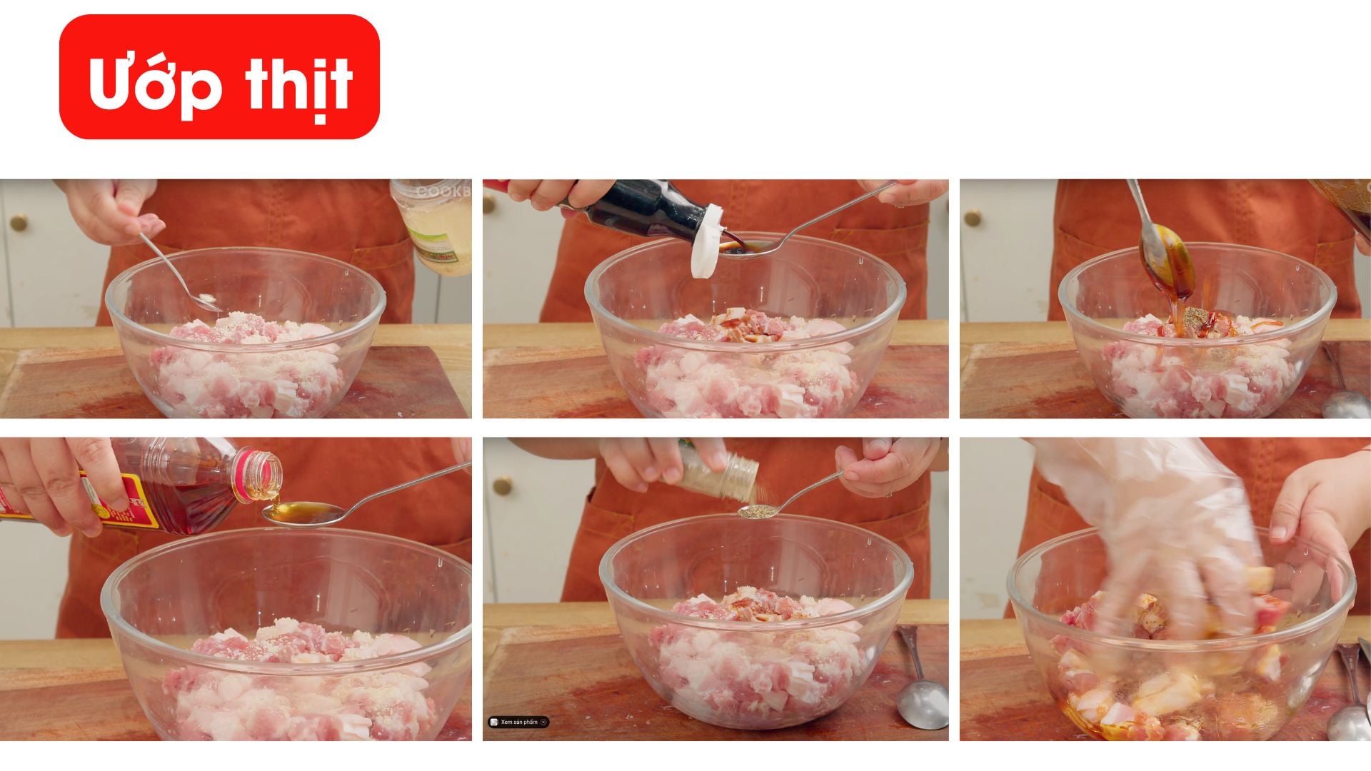Ướp 15–20 phút cho ngấm đều gia vị.
